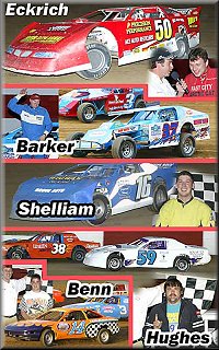 The Iowa Illinois Taylor Insulation Late Model feature was the headliner of the program, with a stellar field lined up to take the green in the 25 lap main event. The lineup included a front row of Darren Miller and Steve Boley, Gary Webb, and Terry Neal were in the second row, the starting field also included heavy hitters Jeff Aikey, Brian Harris and Denny Eckrich. The “Flyin 50’ of Denny Eckrich started in the sixth row but Eckrich was not about to let the heavy hitters up front get away with the top prize on this night. Eckrich quickly moved to the front to set up a great four car race for the lead. The foursome included Miller, Boley, Webb and Eckrich. The fans were treated to an outstanding race amongst four of the very best NASCAR Late Model drivers. Eckrich secured the race lead for good on the 15th lap and went to score the opening night win. Miller took the checkers in second ahead of Webb and Boley.